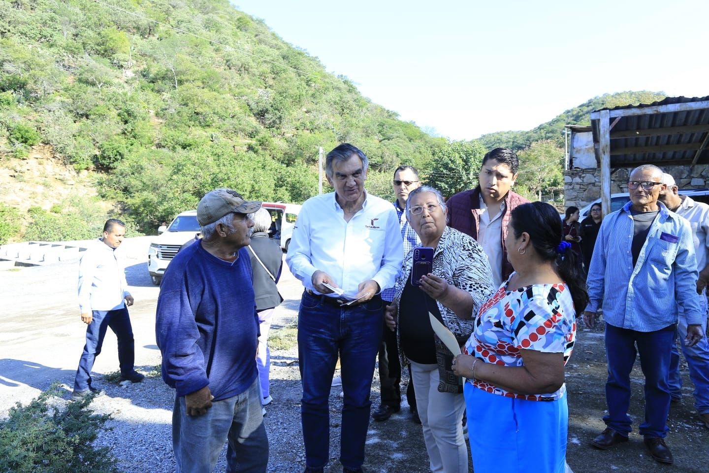 Acompañado por la presidenta del DIF Tamaulipas, María de Villarreal, y junto a la presidenta municipal, Analy Becerra Reséndez, el gobernador escuchó a don Manuel Castellanos, quien durante muchos años trabajó en la mina cuya concesión era operada por la Compañía Minera Moctezuma y Anexas, así como al comisariado ejidal, Antonio Aguirre, quienes le explicaron las condiciones en que se encuentra este centro minero, inactivo desde hace varios años.