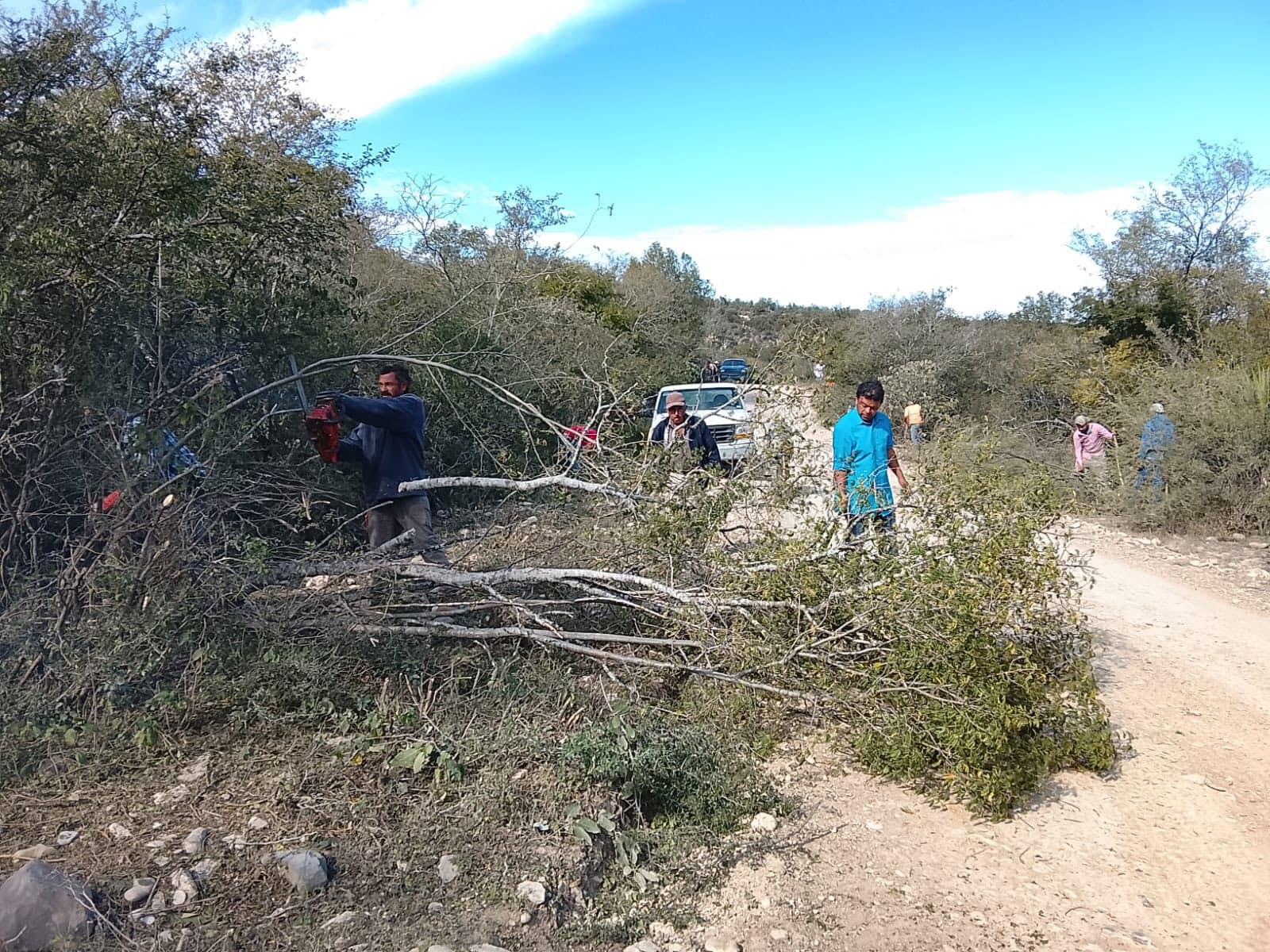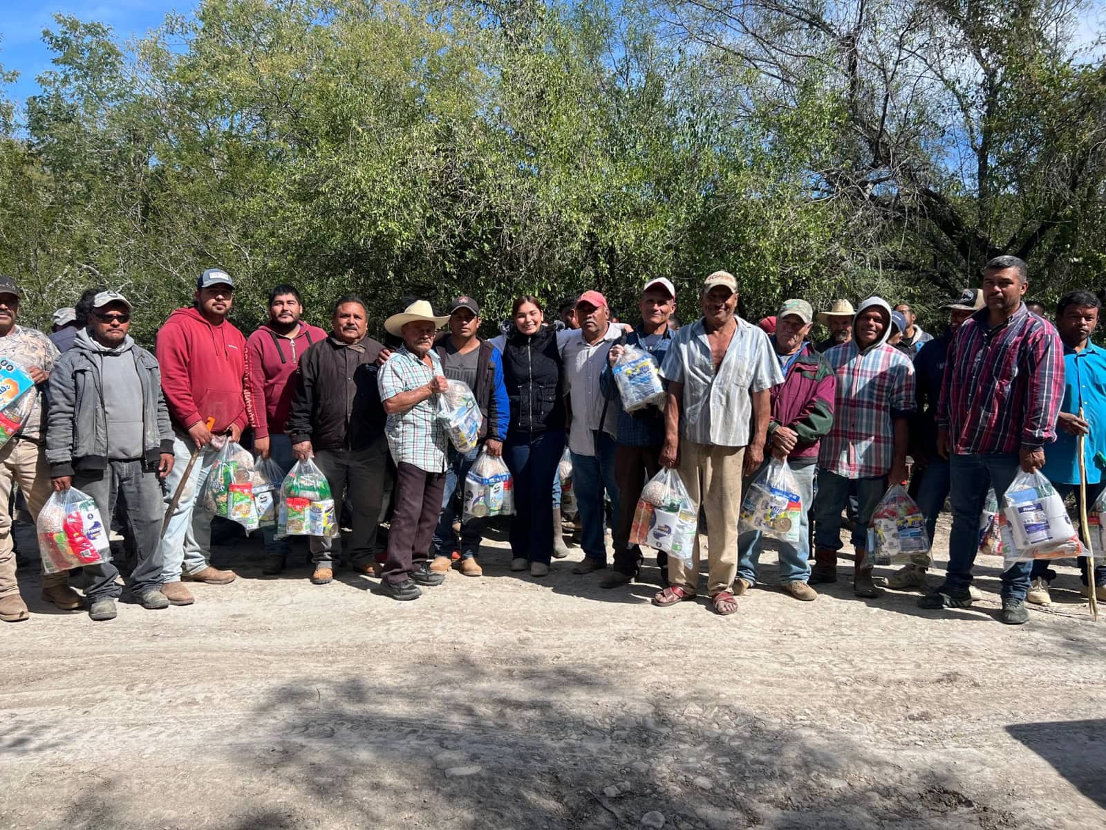 Entrega de despensas a habitantes que apoyan a la limpieza del camino rural de los tanques al ejido las Virgenes.