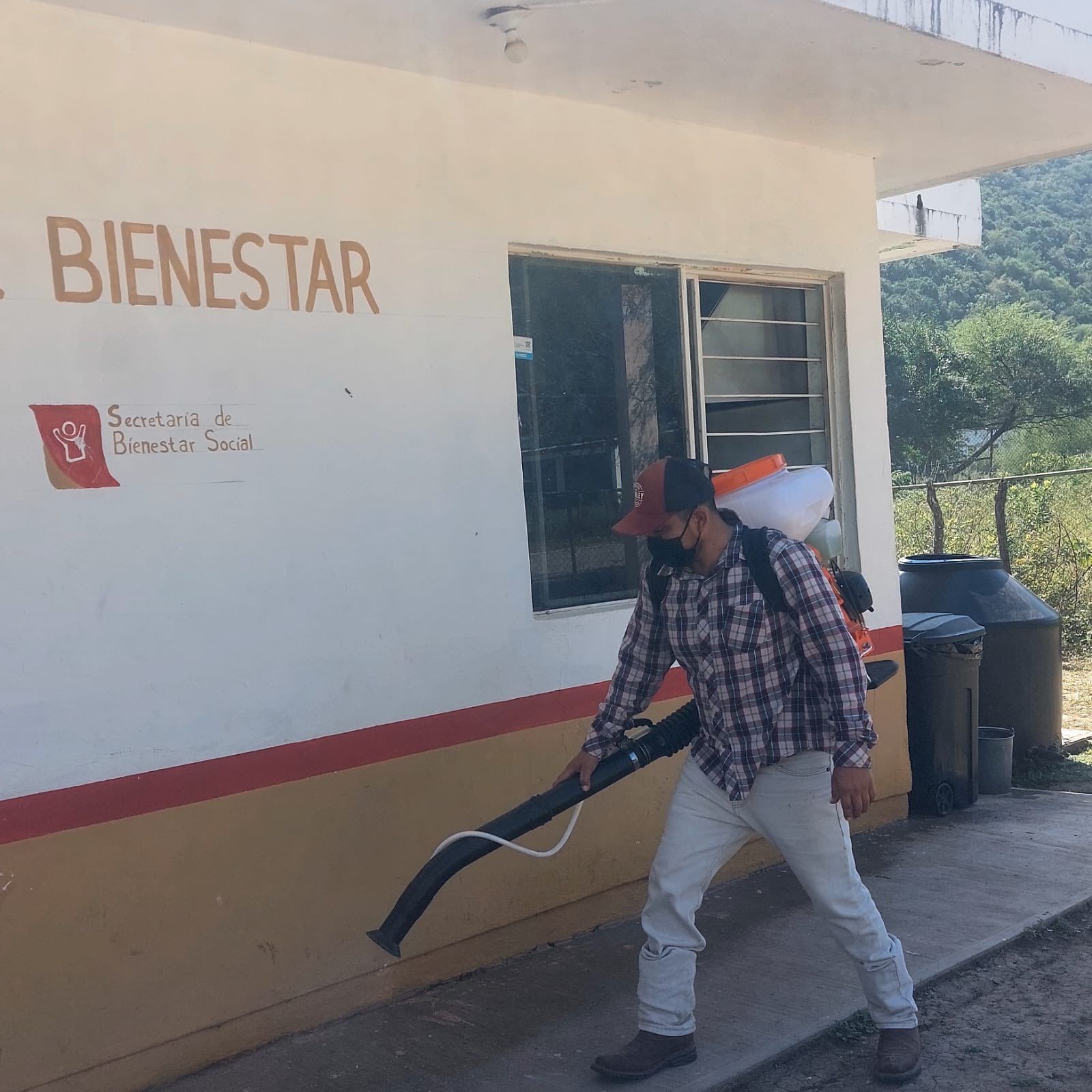 Se realizo la Fumigación contra el mosquito del dengue en el comedor del bienestar, en la escuela primaria y en el caic del ejido El Palmar.
