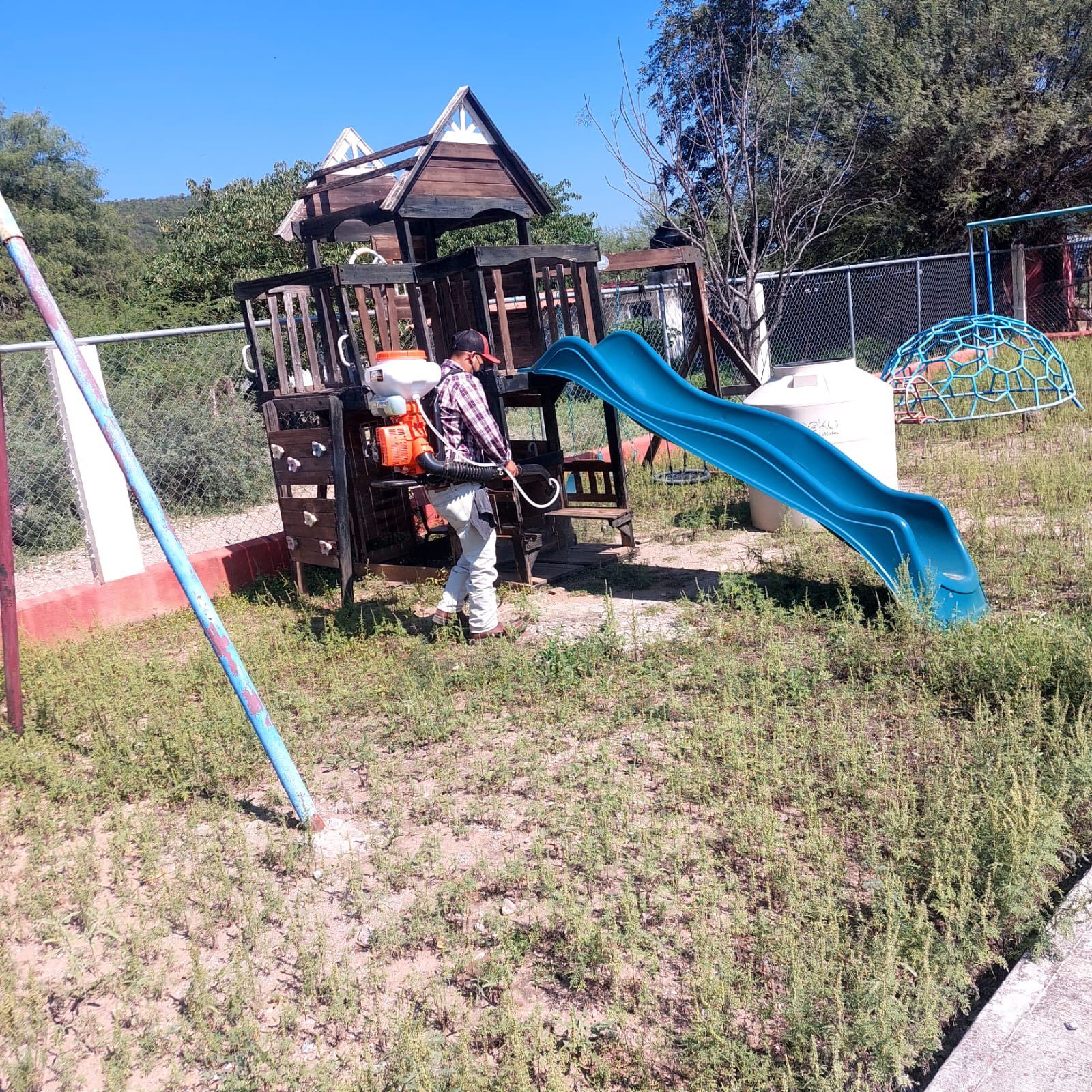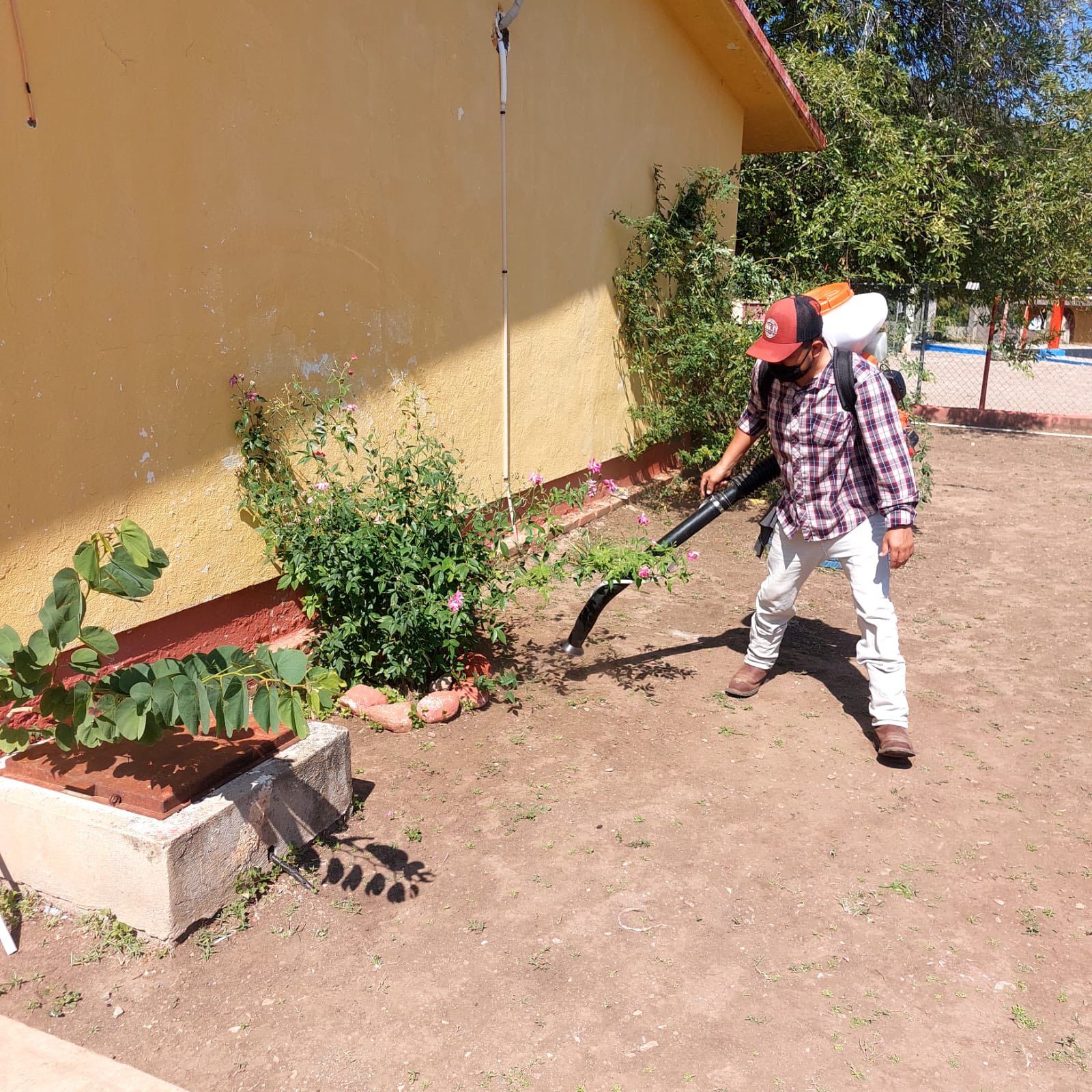 Fumigación en la Escuela Primaria y en el Caic del ejido El Palmar.