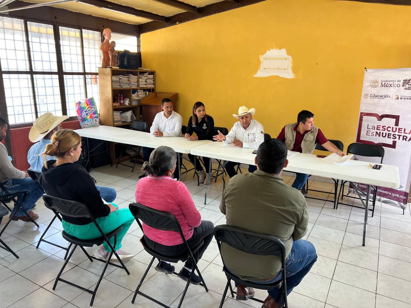 El día de hoy estuvieron la Presidenta Municipal Analy Becerra y el subdelegado Región 8 Susano Horta, en la escuela Francisco I Madero del ejido El Palmar y en la cabecera municipal en el Telebachillerato comunitario 039, en donde dichos planteles salieron beneficiarios para el programa: «la escuela es nuestra» …también se formaron los comités para que este programa pueda aterrizar trabajando en conjunto con Gobierno Federal, Estatal y Municipal.